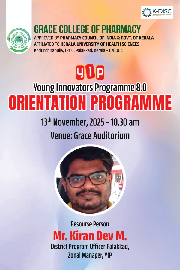 The Grace College of Pharmacy, The first college to start B.Pharm Course in 2001 under the private self - financing sector in the state of Kerala, India