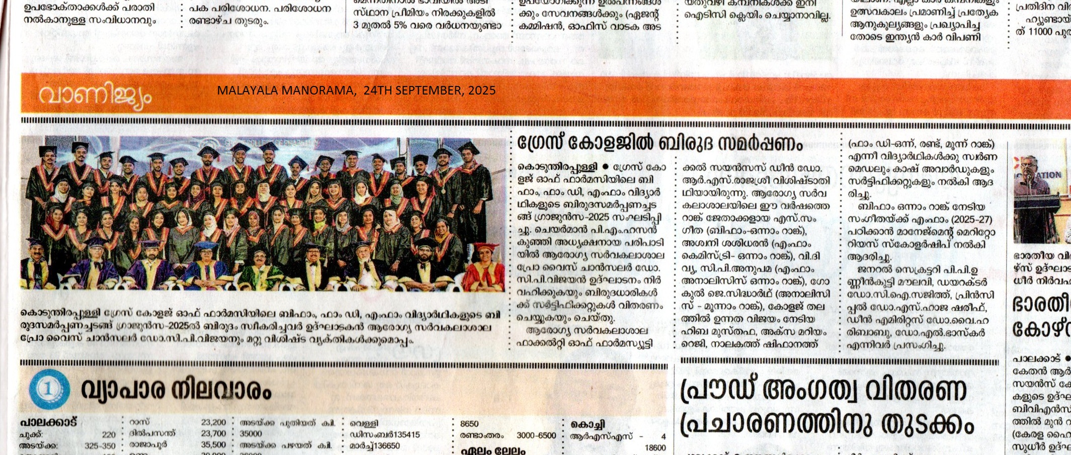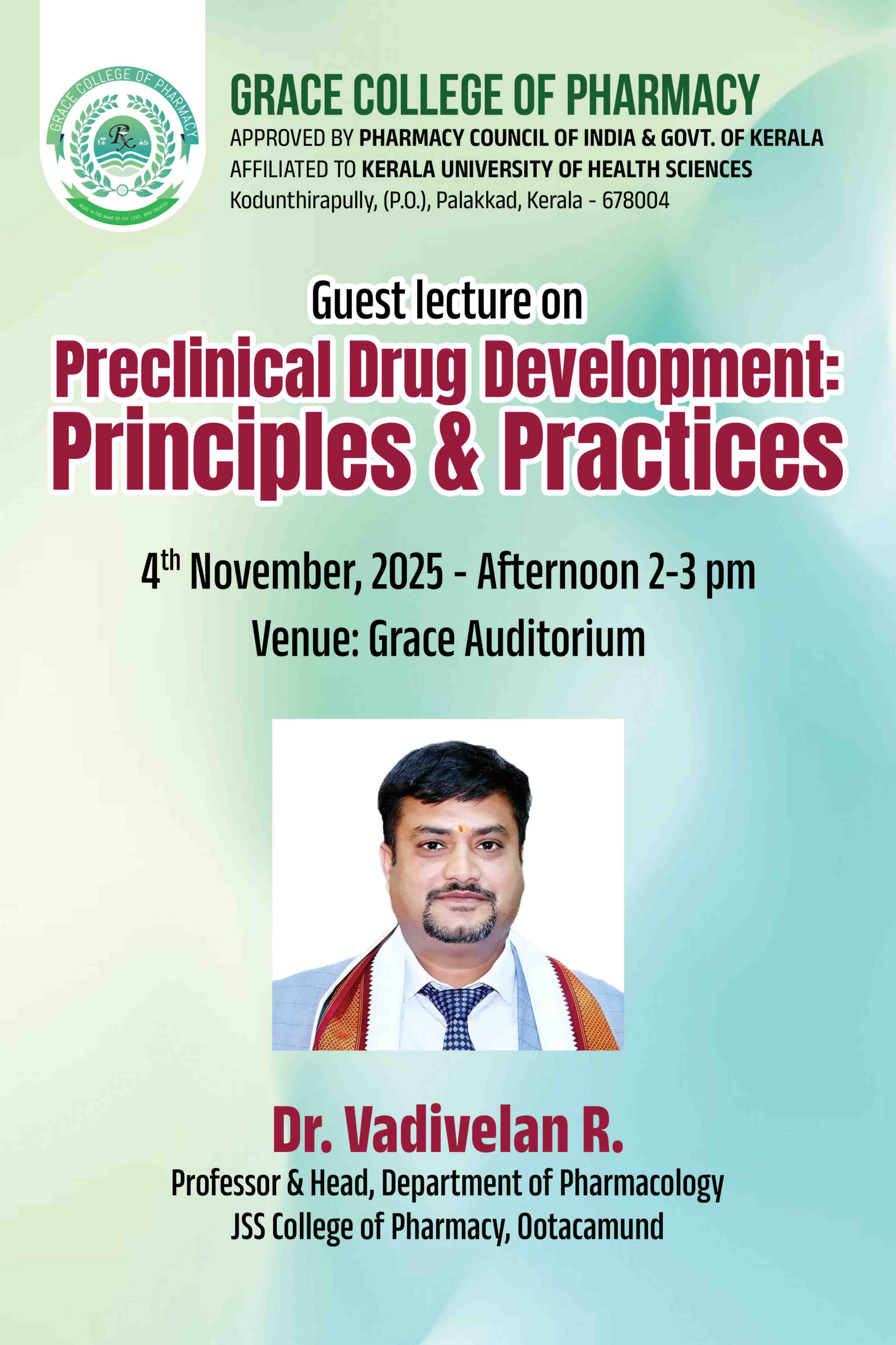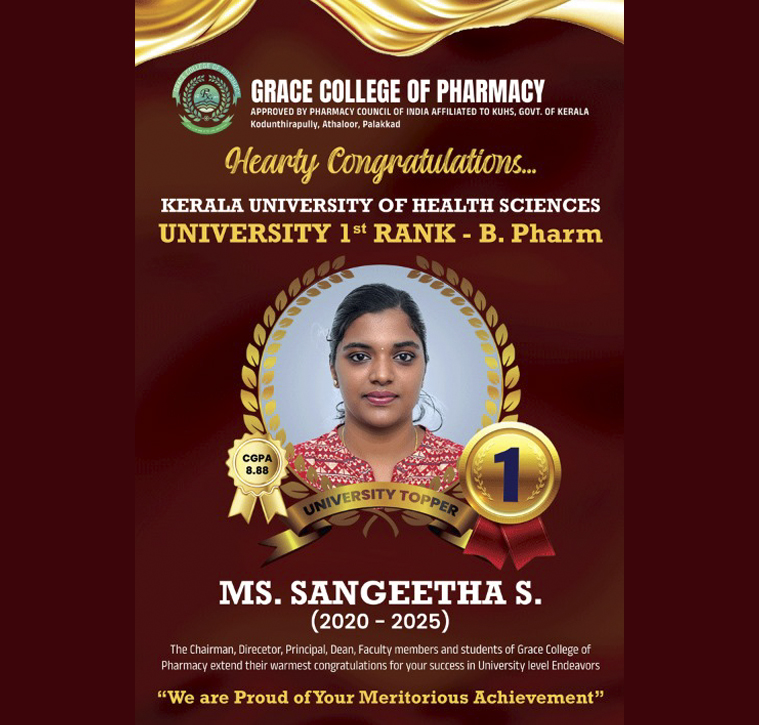 The Grace College of Pharmacy, The first college to start B.Pharm Course in 2001 under the private self - financing sector in the state of Kerala, India